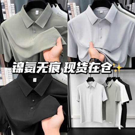 【2026新款短袖】t恤男夏季圆领打底衫半高领丝光棉半袖桑蚕丝V领纯棉翻领polo衫冰丝开衫短袖衬衫纯色中年立领体恤