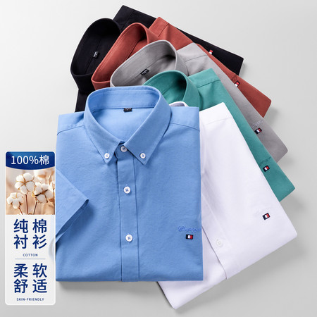 【主推夏季短袖】 ★30色可选 男士商务休闲通勤棉质宽松舒适半袖 纯色条纹格子爆款职业正装衬衣 全年有货★