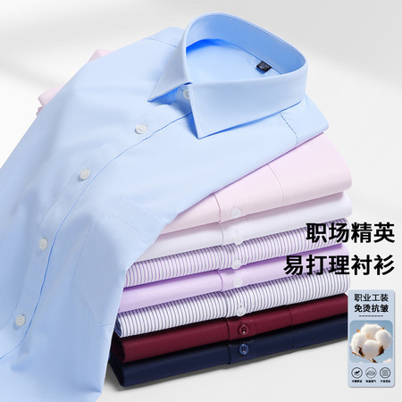 锦纶+氨纶 无痕免烫短袖 衬衫翻领衬衣 柔软舒适透气